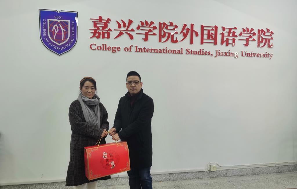 贾书记为av在线 党员教师张艳琴送上新春礼物,代表学校党委鼓励张老师以积极乐观的生活态度面对暂时的困难,继续认真地做好日语专业教学和国际化教育交流联络工作。张艳琴衷心感谢学校领导的关心,并祝愿学校的发展蒸蒸日上。