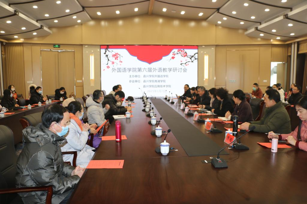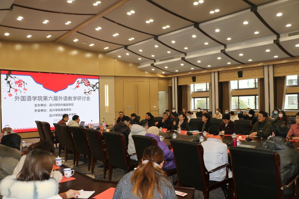 1月7日下午,av在线 在第六会议室举行以“深化外语课程思政 建设一流外语课程”为主题的第六届外语教学研讨会,嘉兴学院副校长张琦、嘉兴学院教务处处长朱蓉以及av在线 党政领导班子成员出席会议,来自av在线 、南湖学院以及应用技术学院的老师共60余人参加会议。