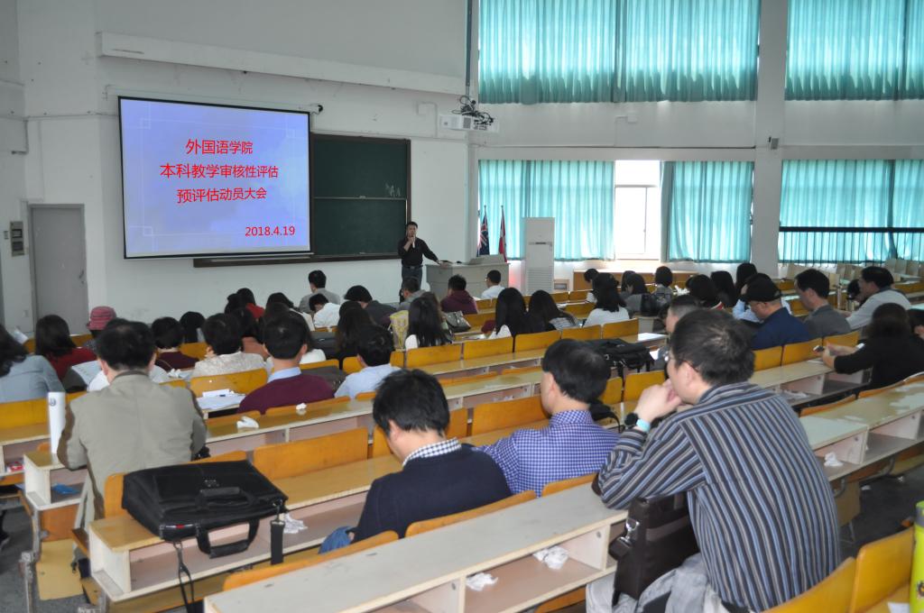 4月19日下午,av在线 在外语楼310报告厅召开了本科教学审核性评估预评估工作动员大会。大会由院长唐艳芳主持,全体教职工出席了会议。