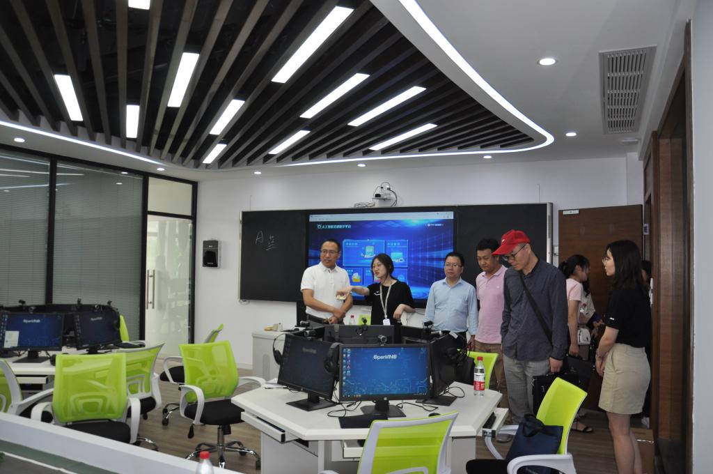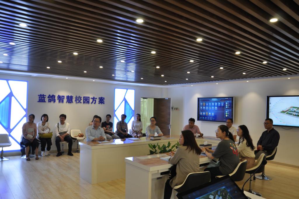 6月4日下午,av在线 一行14名教师在副院长喻锋平带领下前往蓝鸽集团科技公司参观考察,大外部主任、日语系主任、英语系主任和实验室主任全程参与,深入了解蓝鸽集团AI一体化智慧校园解决方案。