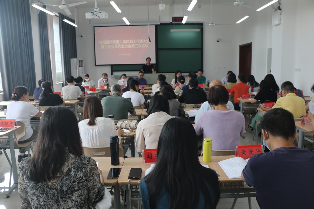 9月16日下午,av在线 第六届教职工代表大会暨工会会员代表大会第二次会议在兴德楼南楼209召开。学院党政班子成员及教师代表共41人参加大会,大会由学院党委书记周钰主持。
