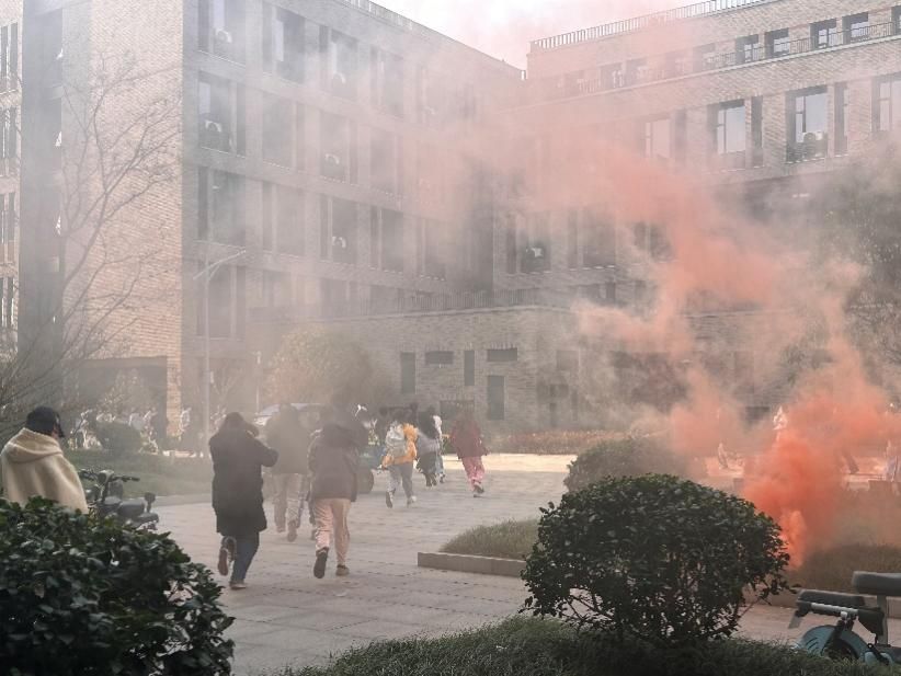 周钰作总结讲话。她指出,面对火灾时,每一秒都至关重要。本次演练活动增强了全体师生的安全意识,提高了师生在紧急情况下的快速反应能力,明确了安全事故后的逃生路线,不仅提升了师生对突发事件的应对能力,也进一步帮助师生学习了防火、自救、互救的基本方法。整个演练活动达到了预期目标,为今后的应急处理演练积累了宝贵的经验。她希望大家切实牢固树立“安全第一”的责任意识,加强安全自查,及时排查安全隐患,共同筑牢校园安全防线。