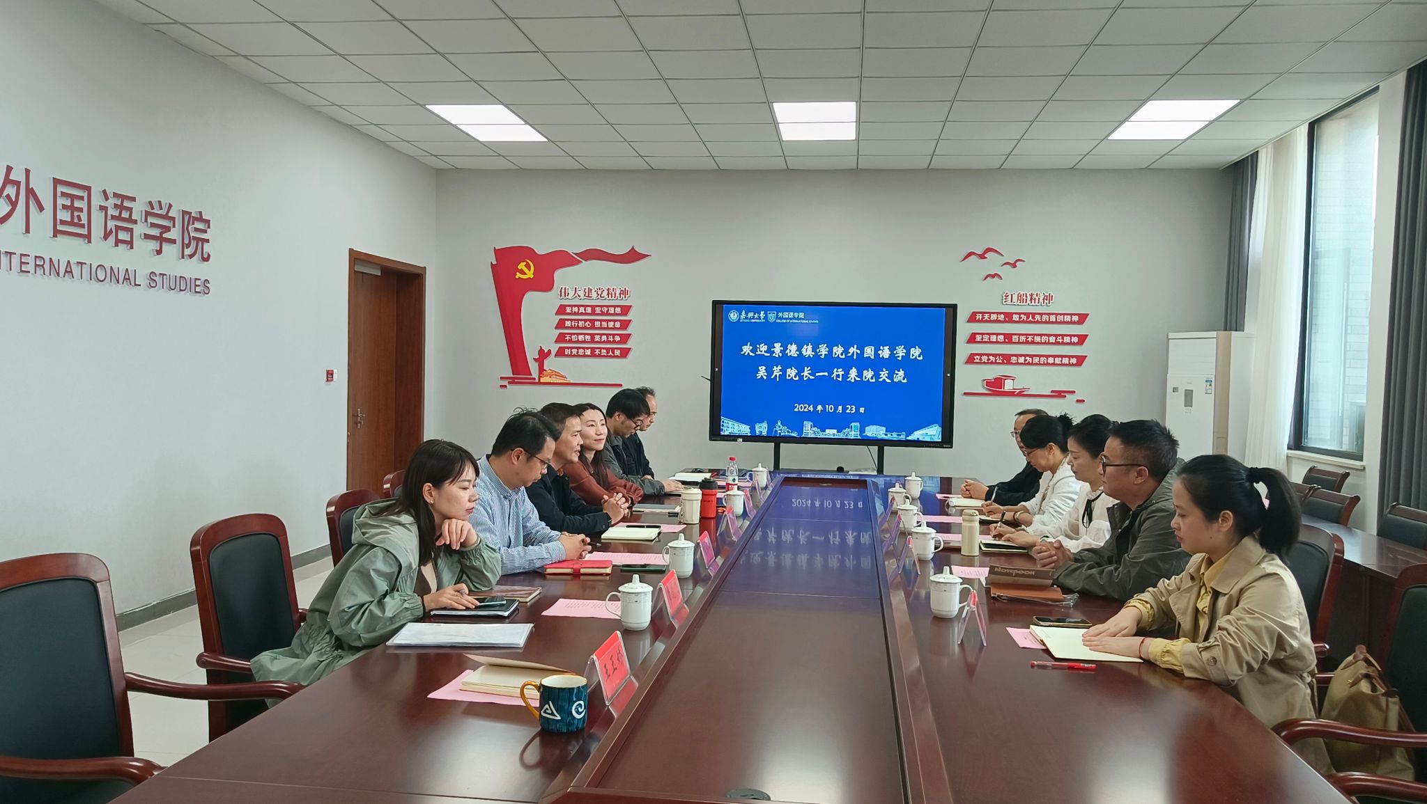 10月23日,景德镇学院av在线 院长吴芹一行5人来院调研交流。院长唐艳芳、副院长邱佳、党委副书记张啸峰及学院骨干教师参加交流会。