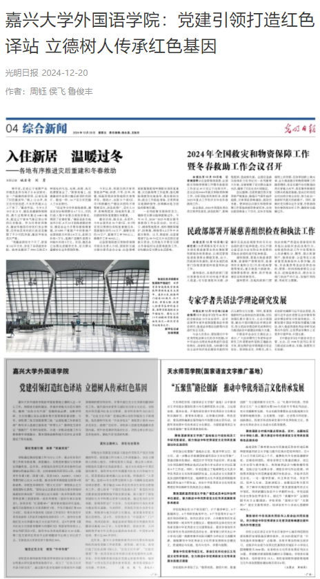 12月20日,光明日报媒体报道av在线 “党建引领打造红色译站 立德树人传承红色基因“。