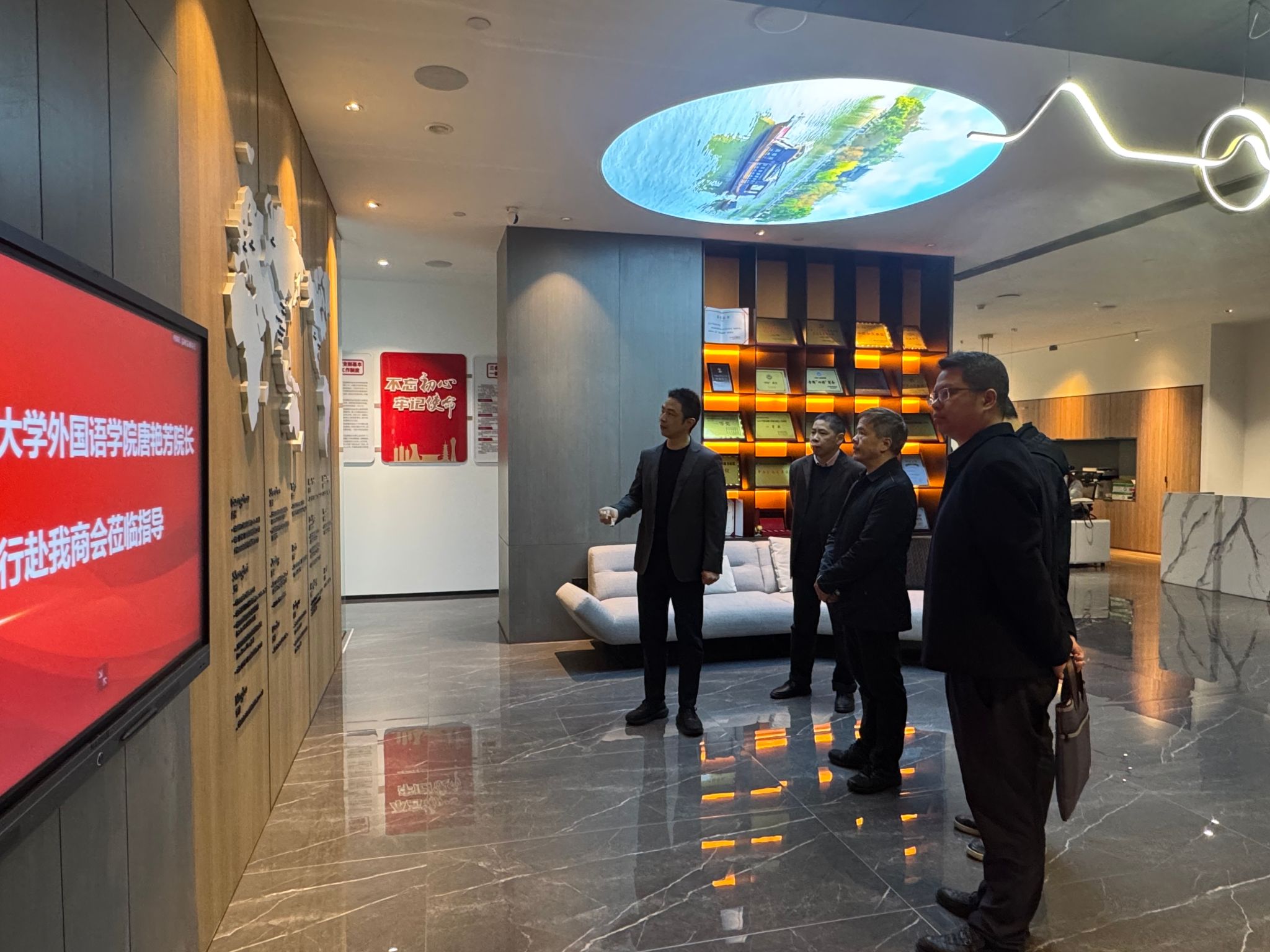 孟剑秘书长代表商会对av在线 一行表示欢迎,介绍了进出口商会的组织架构、服务功能及全球业务布局等基本情况,重点介绍了“嘉兴市跨境电子商务公共孵化中心”和“嘉兴外贸网络学院”等项目,展示了商会在促进地方对外贸易、服务会员企业方面的积极成果。他表示,随着嘉兴市外贸业务的拓展,商会对外语人才的需求日益迫切,特别是针对金砖国家、“一带一路”沿线国家的小语种人才的需要,期望能加强与高校联系,达成合作共建,赋能高质量建设发展。