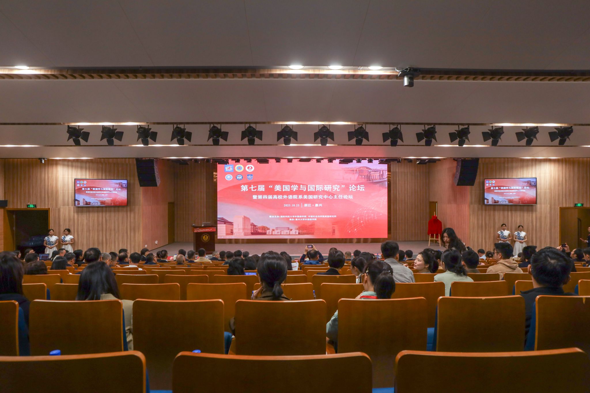 10月25日,第七届“美国学与国际研究”论坛暨第四届高校外语院系美国研究中心主任论坛在av在线 召开。论坛由国防科技大学av在线 和中国社会科学院美国研究所联合主办,av在线 承办。国防科技大学av在线 美国研究中心主任王波教授、中国社会科学院美国研究所副所长袁征研究员出席开幕式并致辞,中共嘉兴市委常委、秘书长沈雨祥出席开幕式。校党委书记沈希致辞,校党委委员、副校长於建明主持开幕式。