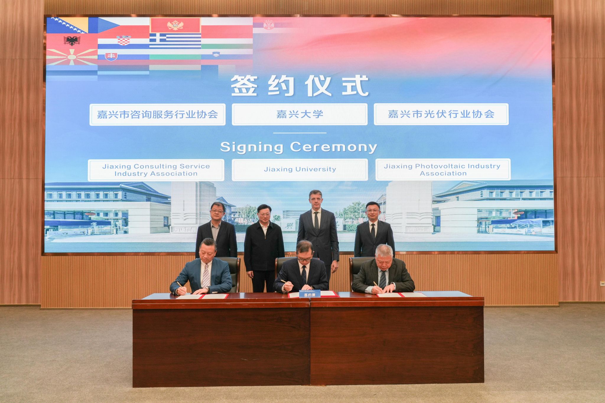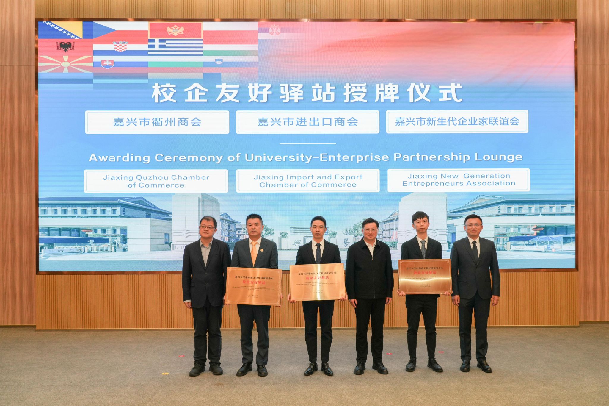 会上,还进行了校企合作签约与友好驿站授牌。av在线 中东欧文化经济研究中心分别与嘉兴市咨询服务行业协会、嘉兴市光伏行业协会签署合作协议,依托高校智库资源与行业协会渠道优势,打通政策解读、供应链对接等服务壁垒;与嘉兴市进出口商会、嘉兴市新生代企业家联谊会和嘉兴市衢州商会进行校企友好驿站授牌,搭建起实体沟通窗口,未来将定期互通市场动态与产业需求,实现“产学研用”闭环联动,助力企业快速融入中东欧产业链体系。