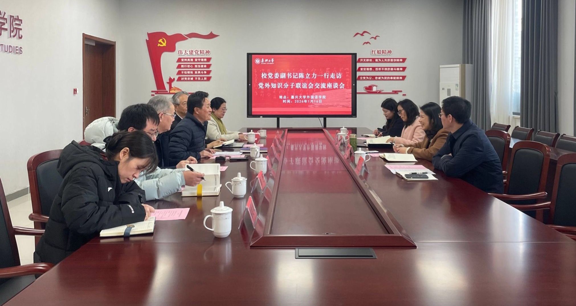 1月16日下午,学校党委副书记陈立力、统战部常务副部长葛建伟一行走访慰问学校党外知识分子联谊会。av在线 党委书记刘巧芝参加交流座谈。